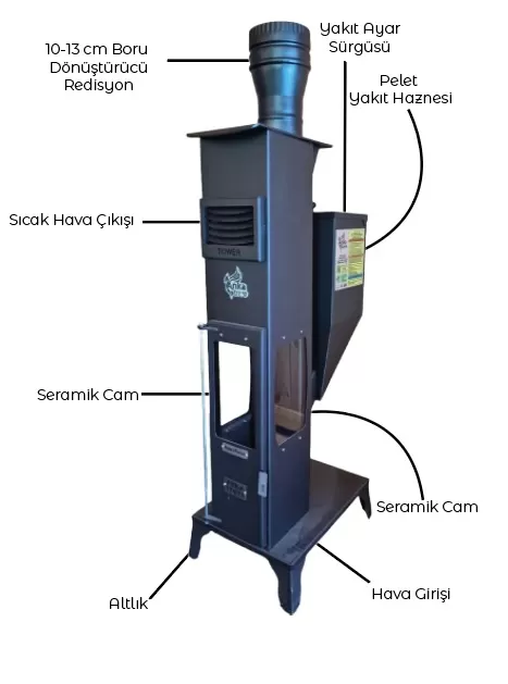 Tower Dekoratif Camlı Küçük Pelet Soba, Şömine Tipi Önden Yanmalı, Doğan %100 Pelet Soba, Profesyonel Ürün türkiye geneli kargo ile gönderim.